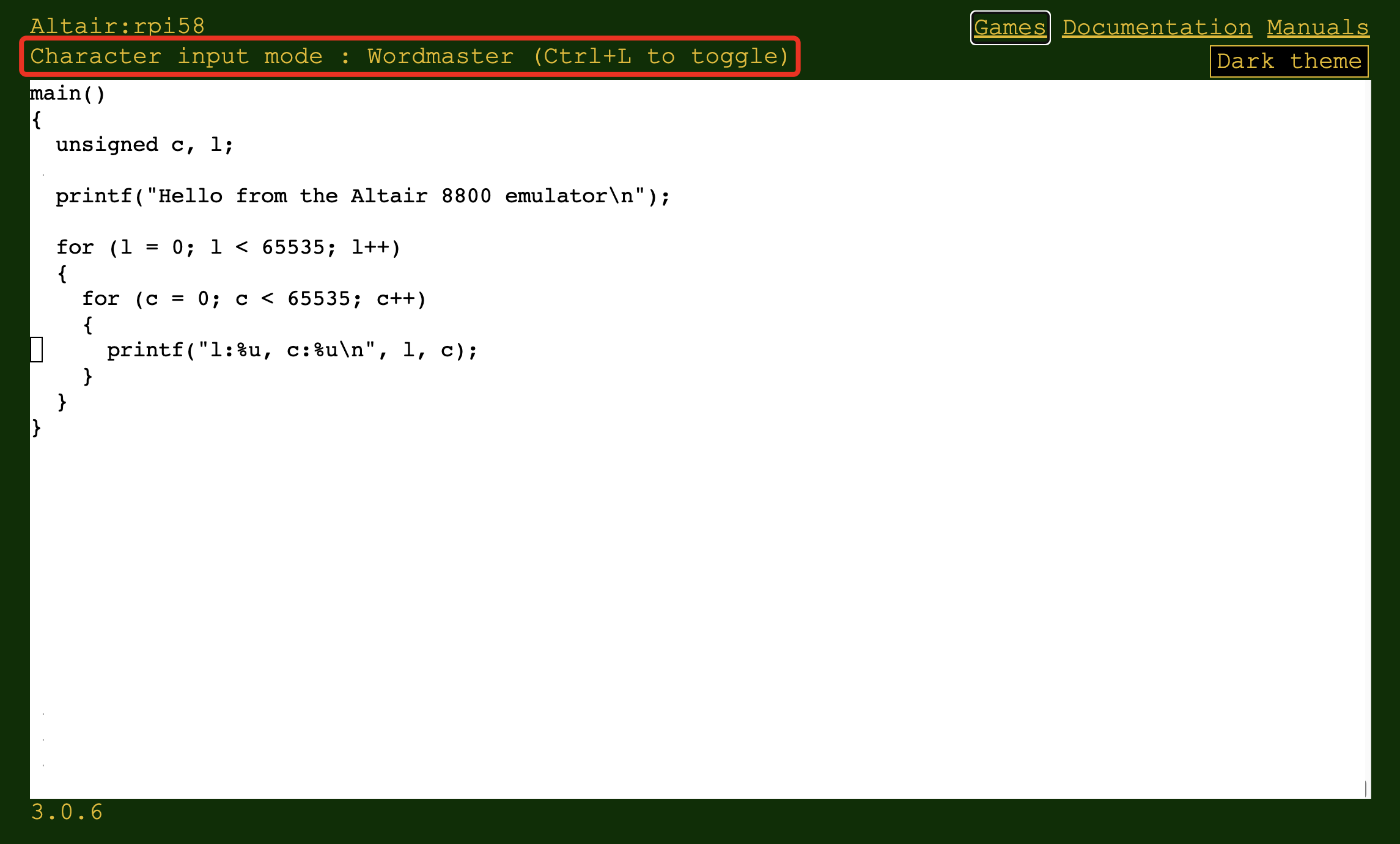 - On‑emulator editing (Word-Master) – Edit inside the emulated CP/M environment using the bundled Word-Master editor. Authentic, but slower and less ergonomic for substantial changes.